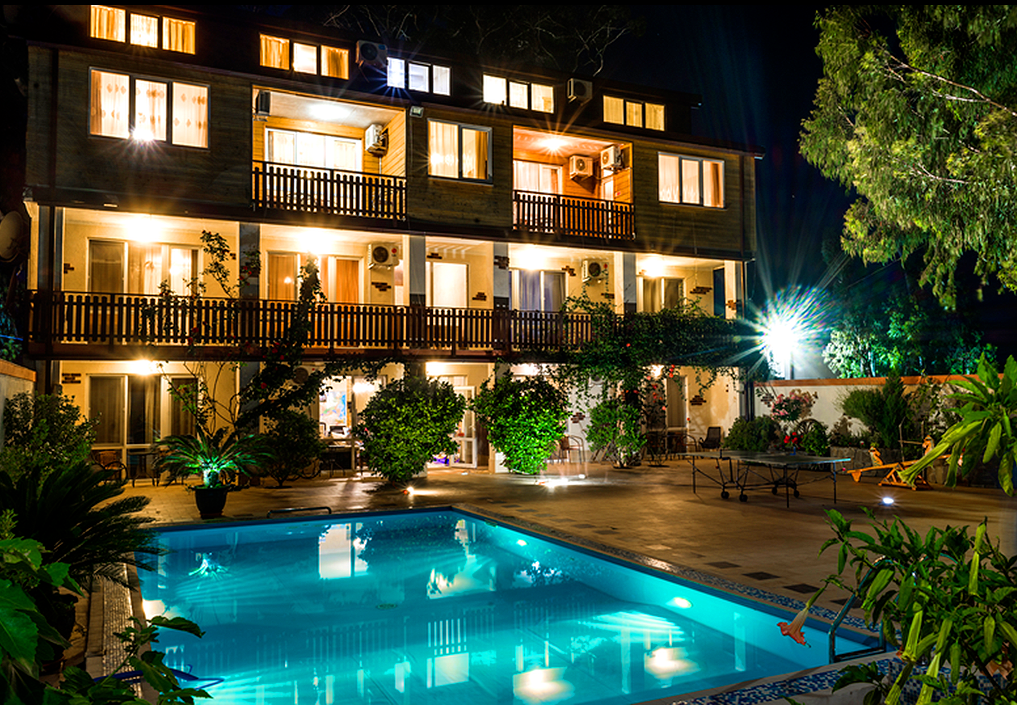 Гостевой дом "Сказка" - это четырехэтажное здание в итальянском стиле с панорамными видами на море и горы, расположенное у подножья горы Мамзышха, окруженное вековыми эвкалиптами, каждый из которых со своей историей. Это один из самых красивых и благоприятных как для отдыха, так и в отношении экологии, районов города Гагры.