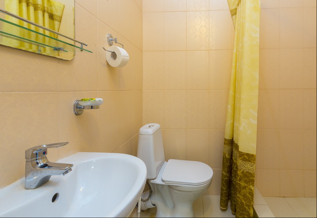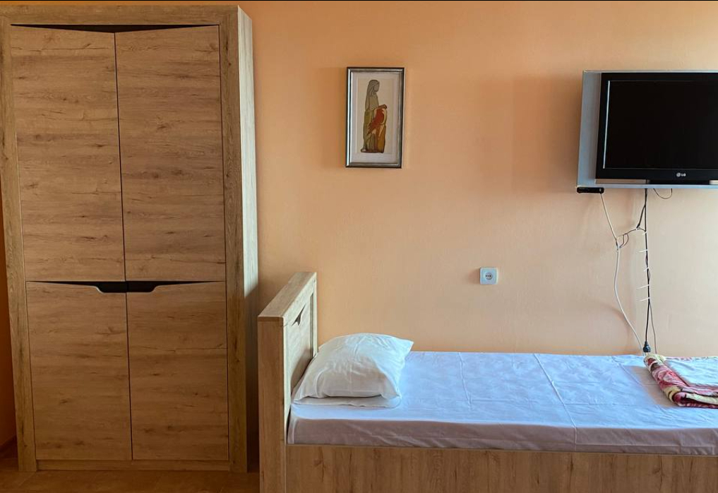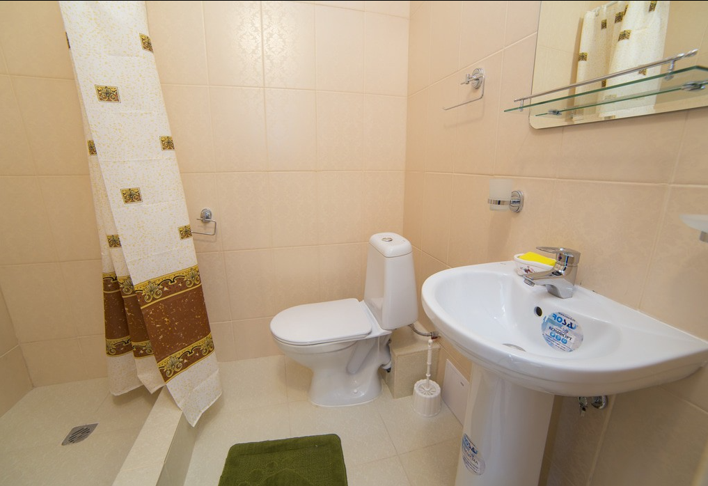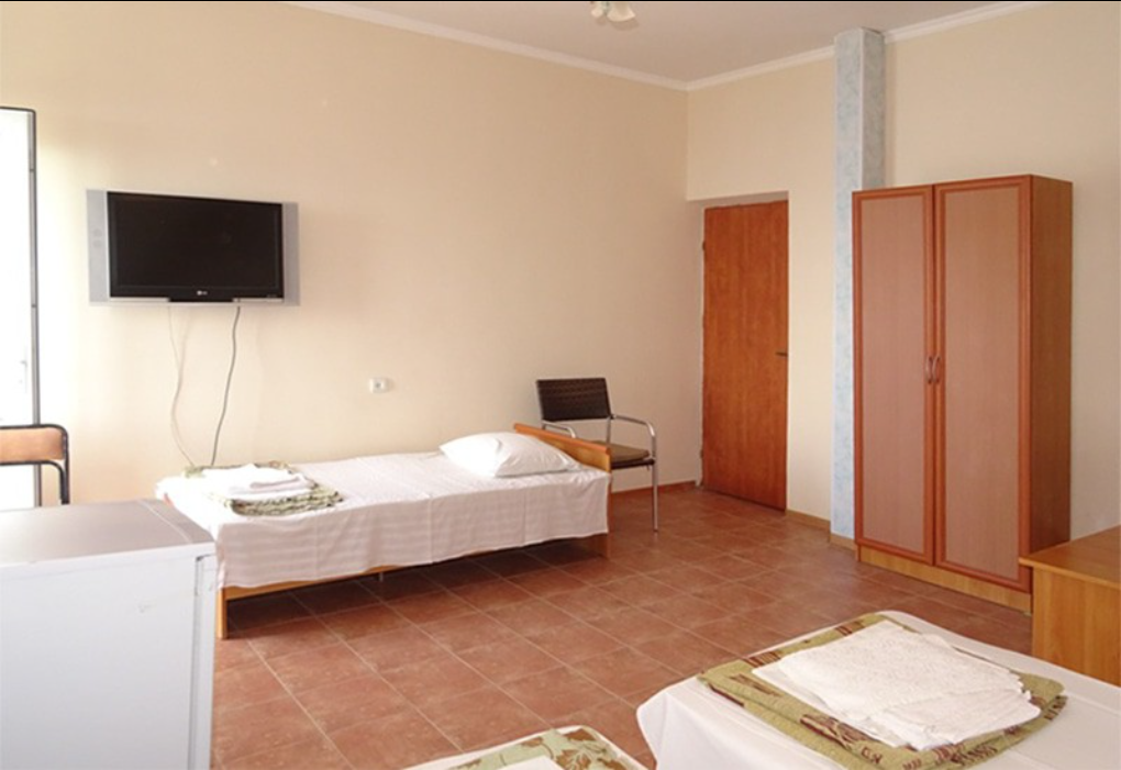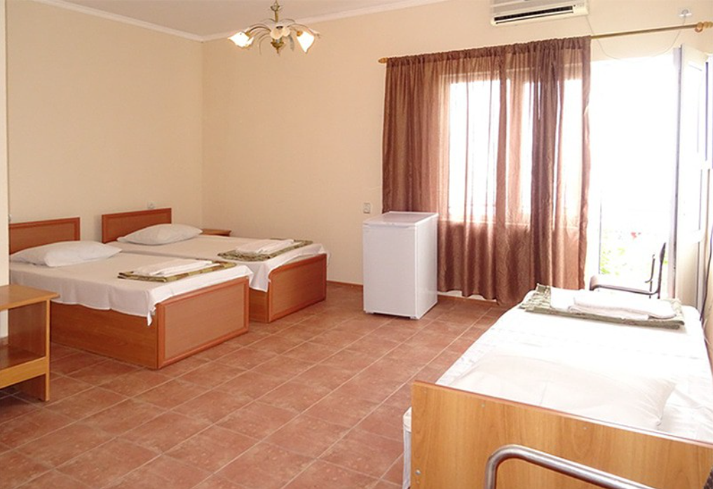 3-местный стандартный (1-ый этаж) (макс. 3+1 чел., Wi-Fi бесплатный в номере, телевизор, кондиционер, душ, холодильник, 2-спальная кровать, 1-спальная кровать, туалет, на этаже: чайник, микроволновка, гладильная доска, утюг). Доп. место - еврораскладушка.