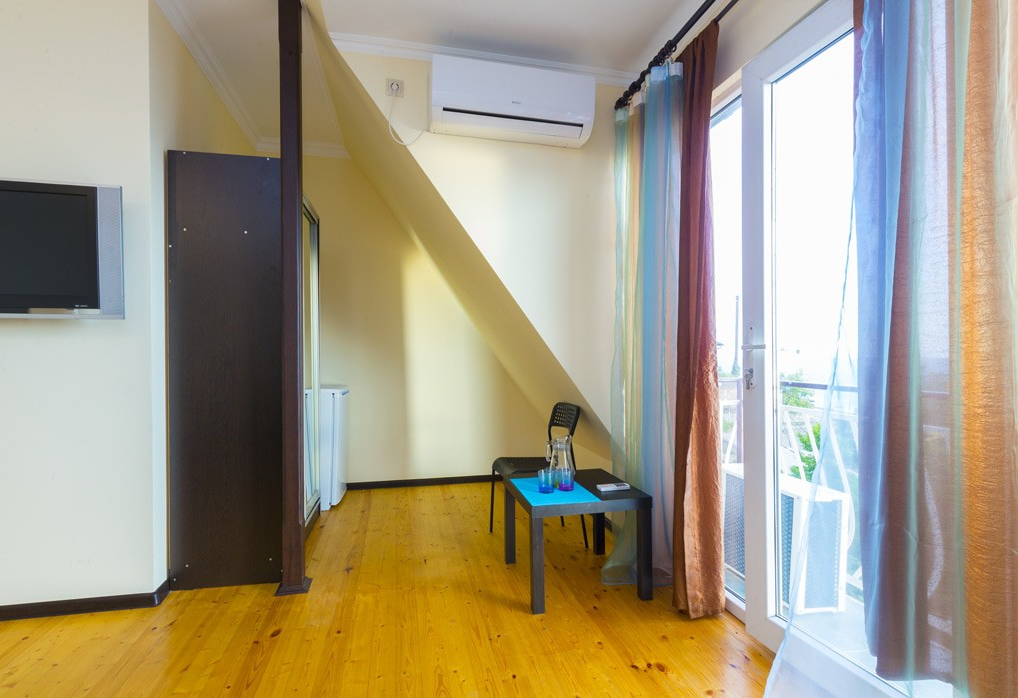 2-местный мансарда (макс. 2 чел., 30 кв. м, Wi-Fi бесплатный в номере, телевизор, кондиционер, душ, холодильник, балкон, 1-спальные кровати, туалет, на этаже: чайник, микроволновка, гладильная доска, утюг).