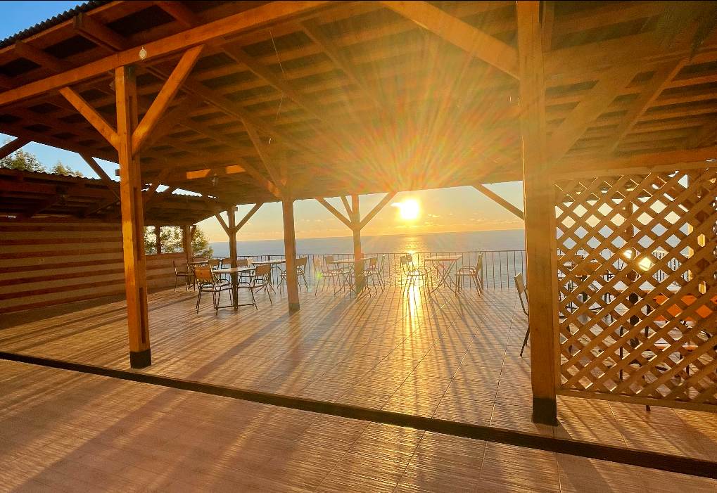 На первом этаже отеля есть открытое кафе со столиками. Здесь гости могут вкусно покушать, наслаждаясь прекрасными видами. Для любителей шашлыка есть мангал.Также, для путешествующих на своем личном транспорте, есть автомобильная парковка.