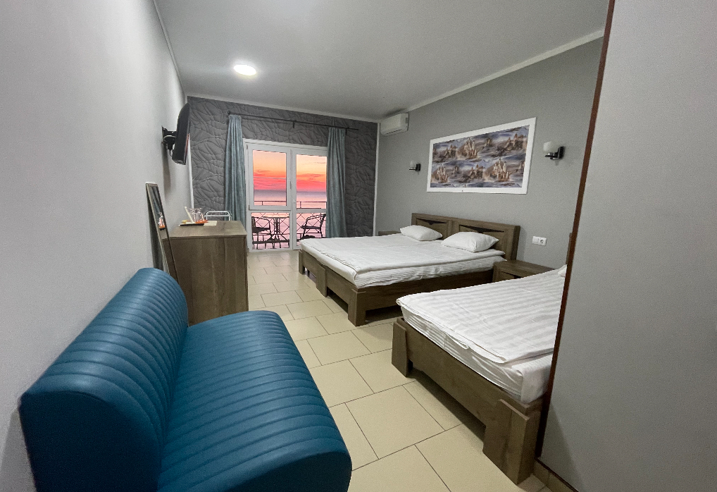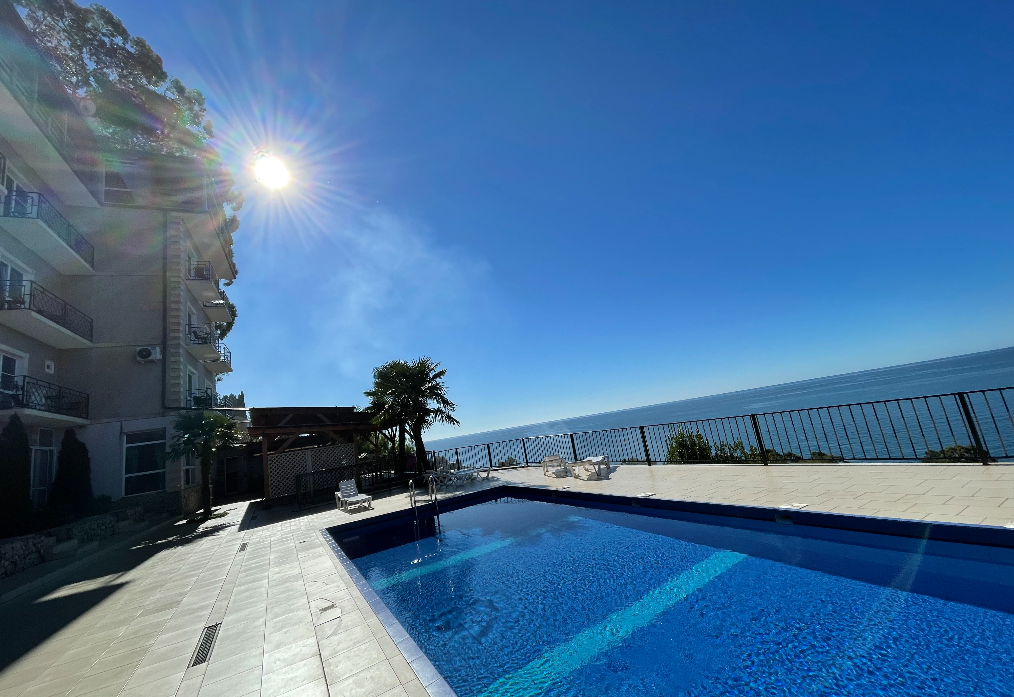 Отель комфортного уровня в районе Старой Гагры, является современным четырехэтажным зданием, возведенным в 2017 году. Со всей территории гостиницы открывается потрясающий вид на море и Гагру. Большинство номеров отеля с балконами и абсолютно все с незабываемым видом на море и только пять их них без балкона, но выходят сразу к бассейну. Гости отеля могут одновременно наслаждаться шикарными рассветами и закатами Абхазии, не покидая свой номер.
