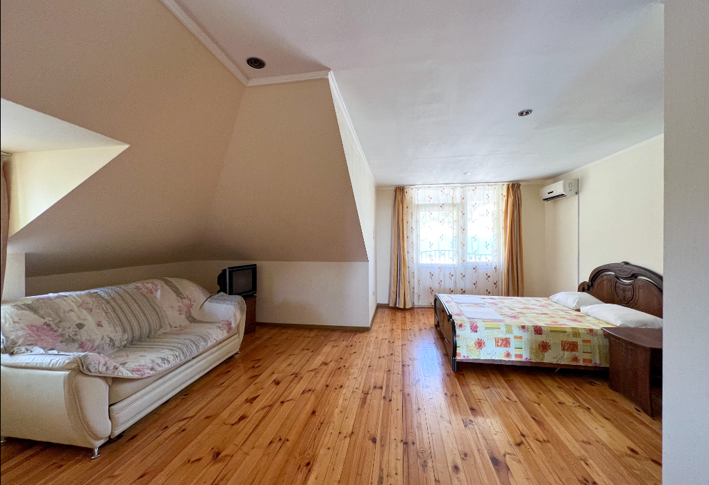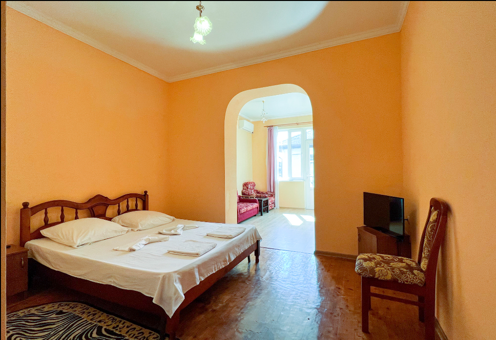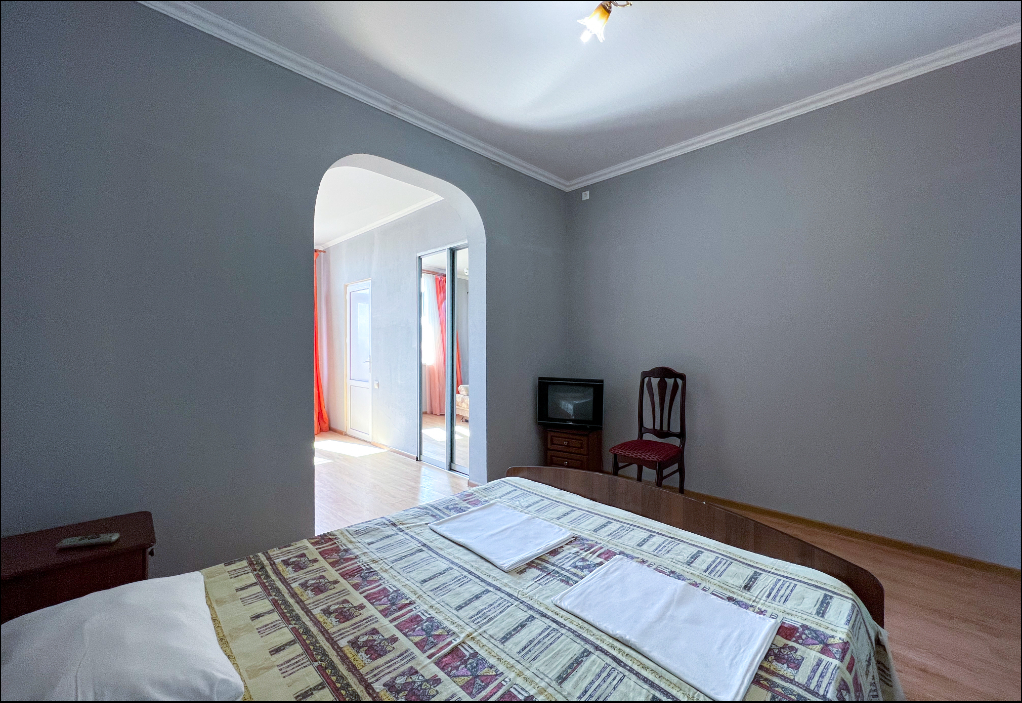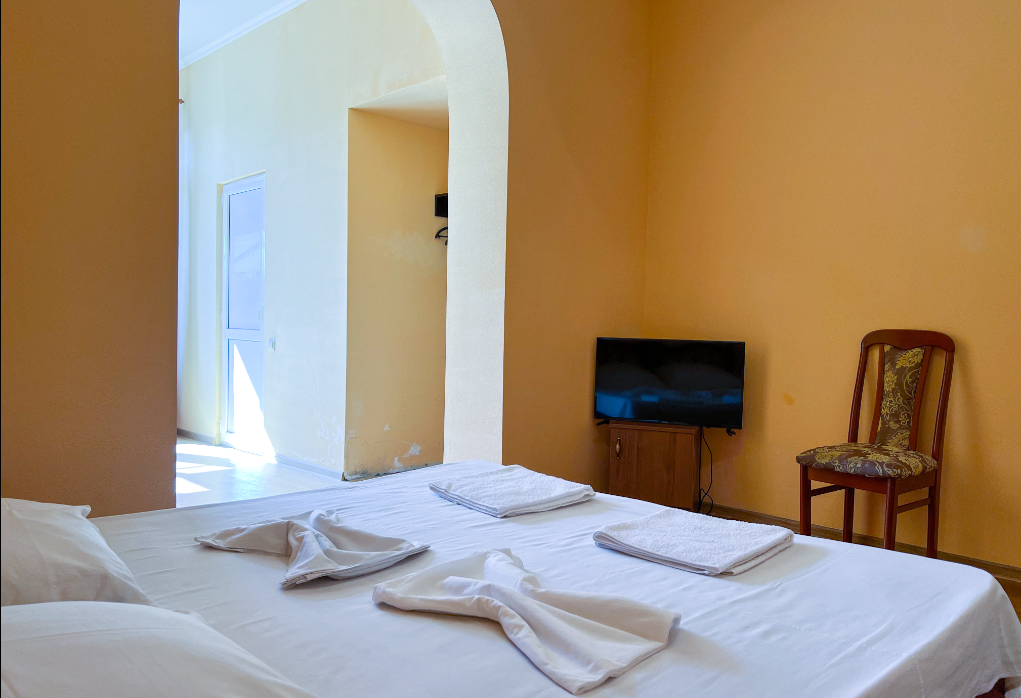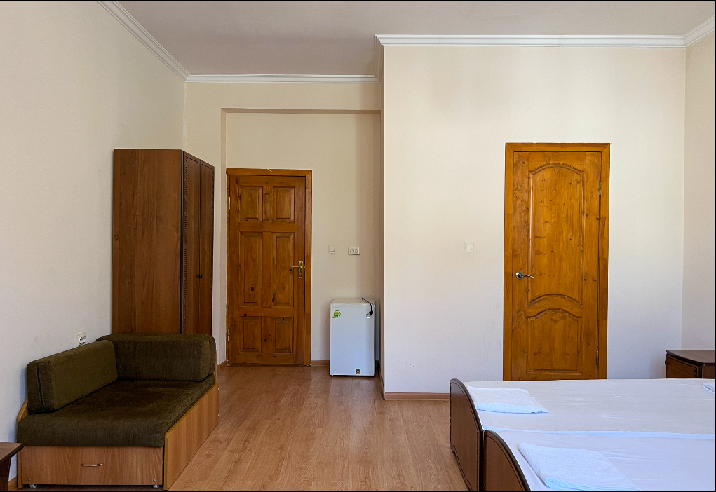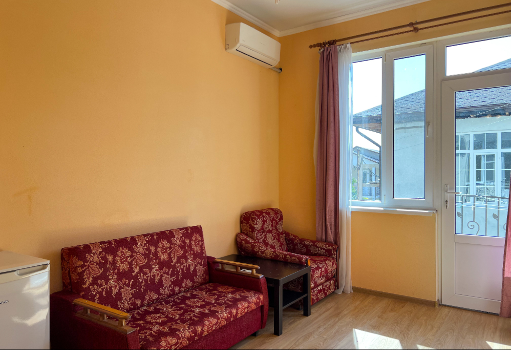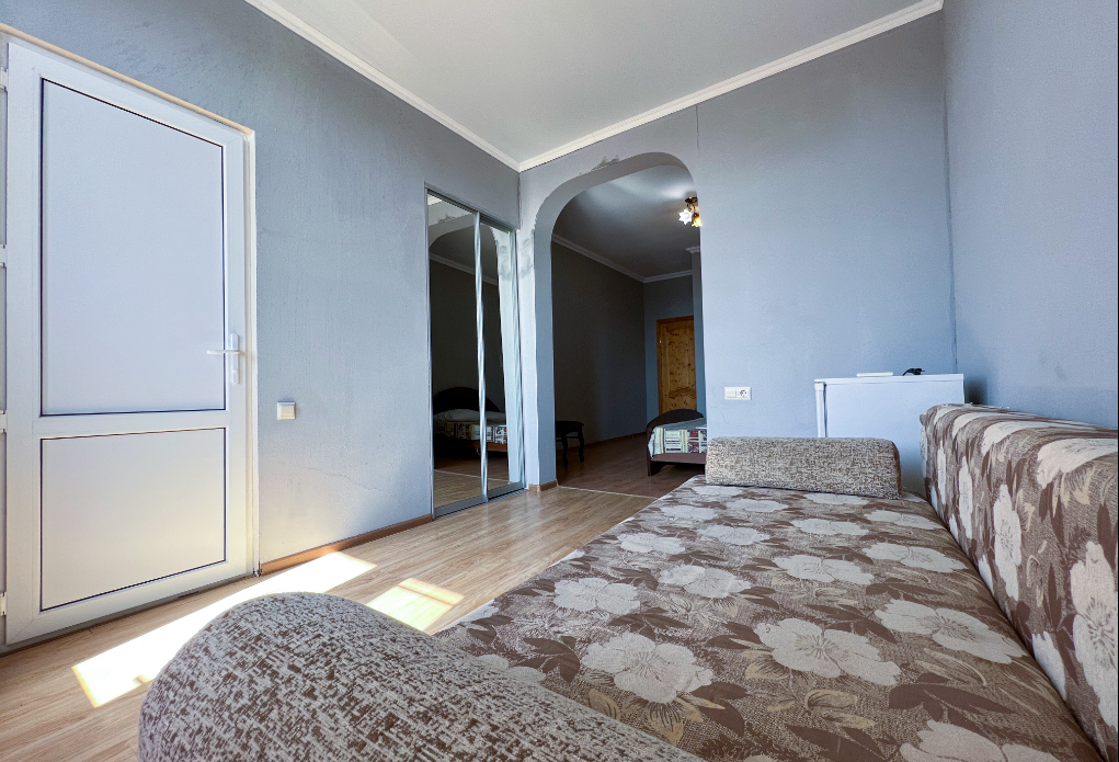 2-местный люкс без балкона (макс. 2+2 чел., 40 кв. м, Wi-Fi, телевизор, кондиционер, душ, фен, туалетные принадлежности, балкон, сейф, мебель на балконе, стул, 2-спальная кровать, прикроватные тумбочки, журнальный столик, шкаф, зеркало, мини-холодильник, туалет, сушилка для белья, чайная станция, пуф, общая терраса). Доп. место - диван-кровать, спальное место 140*190.