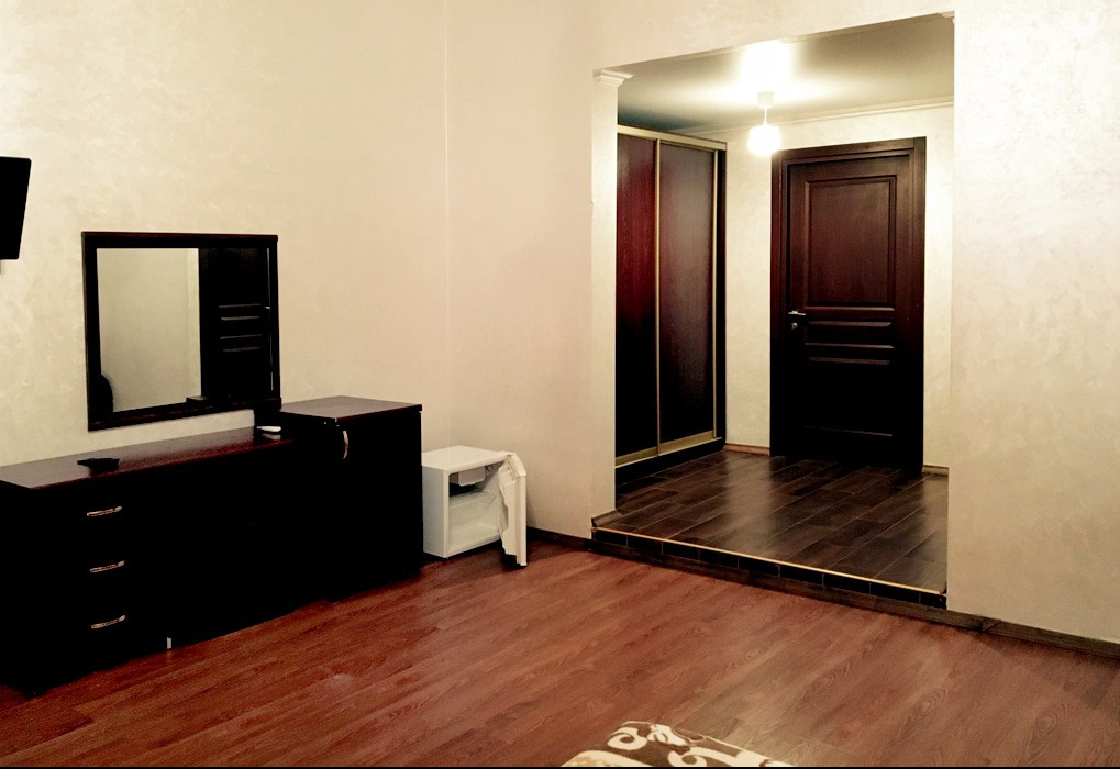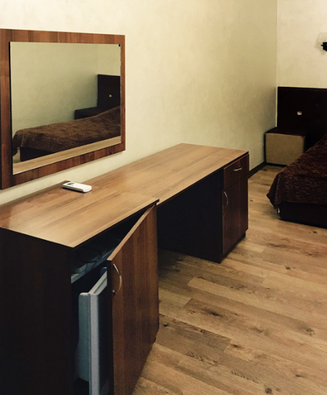 3-местный люкс (макс. 3+1 чел., 23 кв. м, Wi-Fi бесплатный в номере, телевизор, спутниковое телевидение, кондиционер, душ, фен, холодильник, балкон, мебель на балконе, 1,5-спальные кровати, прикроватные тумбочки, шкаф, сушилка раскладная (для белья), туалет, кофейный столик). Доп. место - диван-кровать/кровати, могут быть установлены без ограничения по возрасту.