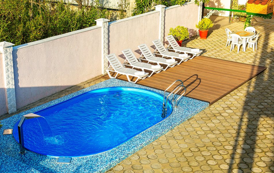 • пользование открытым подогреваемым бассейном,оборудованным лежаками,