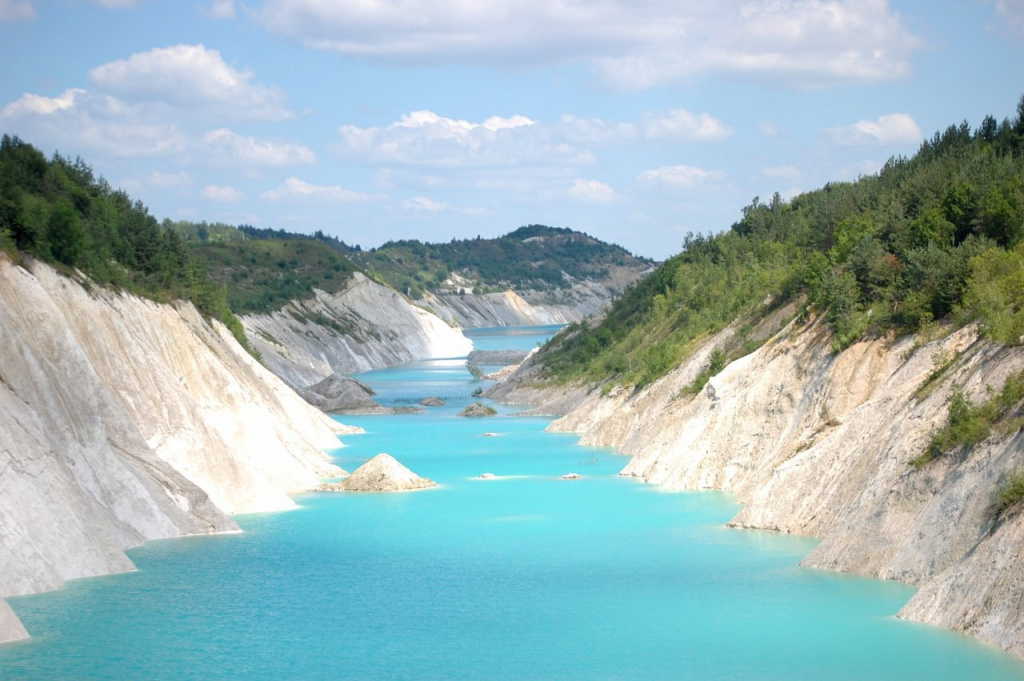 Далее мы отправимся к меловым карьерам, которые называют белорусскими Мальдивами. Когда-то здесь добывали мел, а позже карьеры заполнились водой. Места здесь очень живописные: вода лазурного цвета, обрывистые берега, сосны и березы.