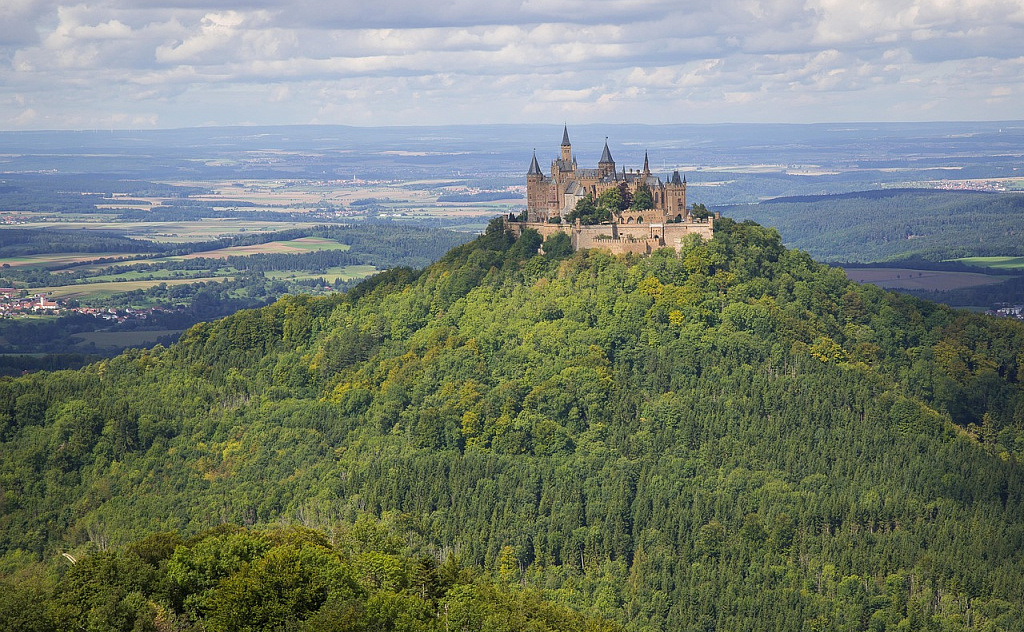 На вершине горы ГОГЕНЦОЛЛЕРН возвышается один из самых красивых замков Германии — замок Гогенцоллерн (входной билет: взрослые 12 евро, дети 6 евро). Его ещё называют «замком в облаках», и это не поэтическое преувеличение: на высоте 855 метров над уровнем моря, он действительно выглядит так, будто парит в небесах. С первого взгляда этот замок — как из сказки: мощные каменные стены, стройные башни, смотровые балконы и узкие окна, из которых когда-то, возможно, наблюдали за горизонтом рыцари. Гогенцоллерн — это не просто крепость, это родовое гнездо династии, которая правила Пруссией, а затем и всей Германской империей вплоть до конца Первой мировой войны. Сегодня в замке можно увидеть их личные вещи: корону Вильгельма II, оружие, письма, мебель, и даже портреты.